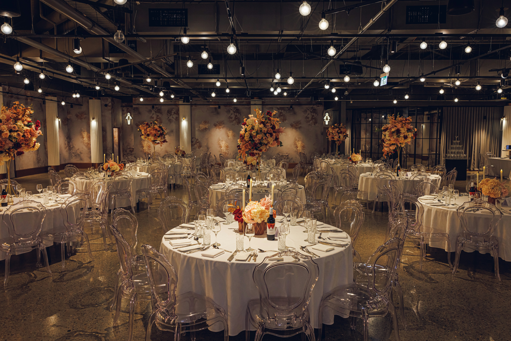 With raw materiality and exposed inner workings, Elettra is designed as a bold interpretation of industrial luxe and modern architectural chic. The culmination of polished concrete floors, scattered Pendant of Edison light bulbs and a black open plenum ceiling make a welcome comeback to the narrative of the event space.