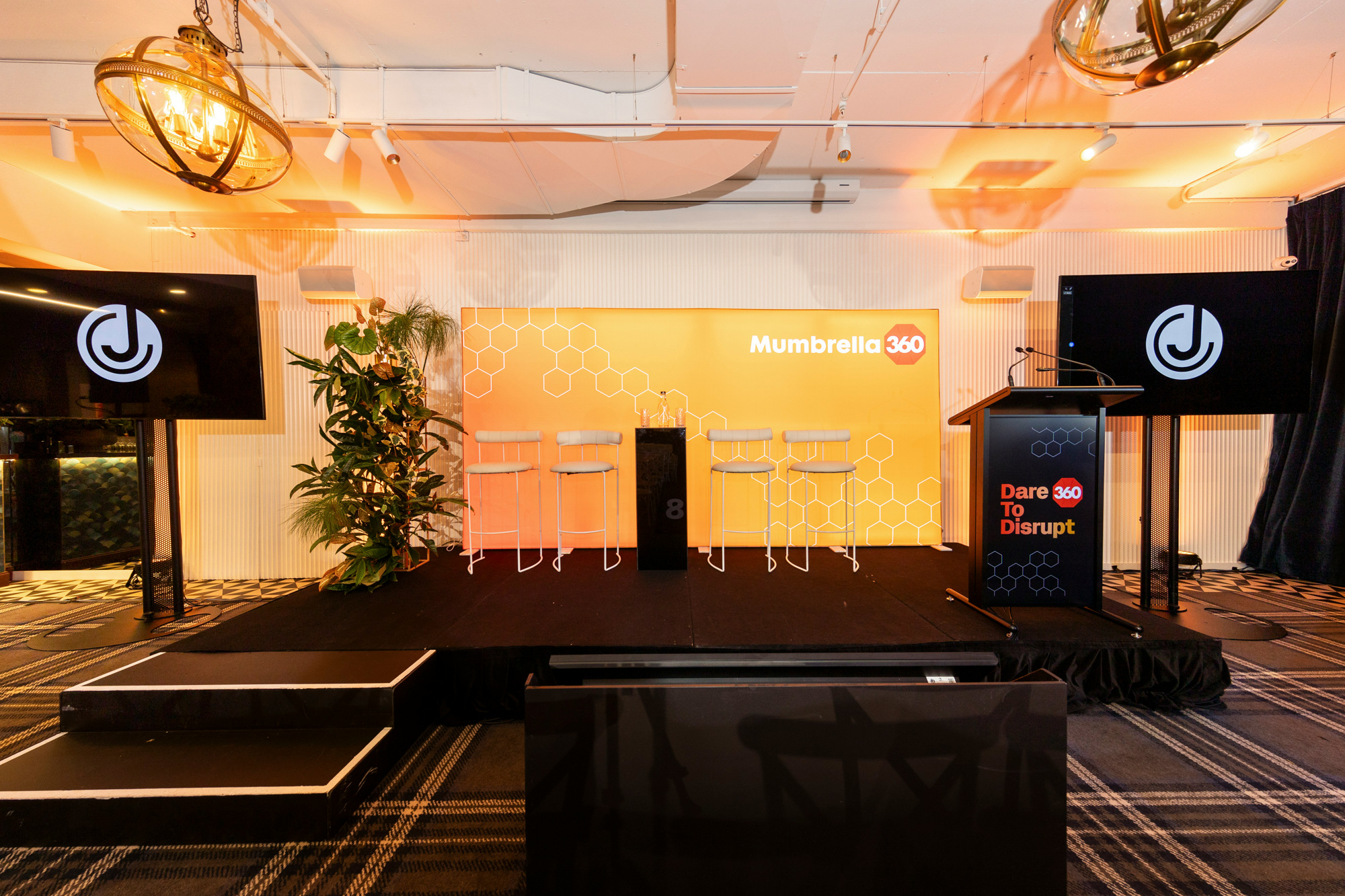 • Lectern/microphone, surround speakers for background music