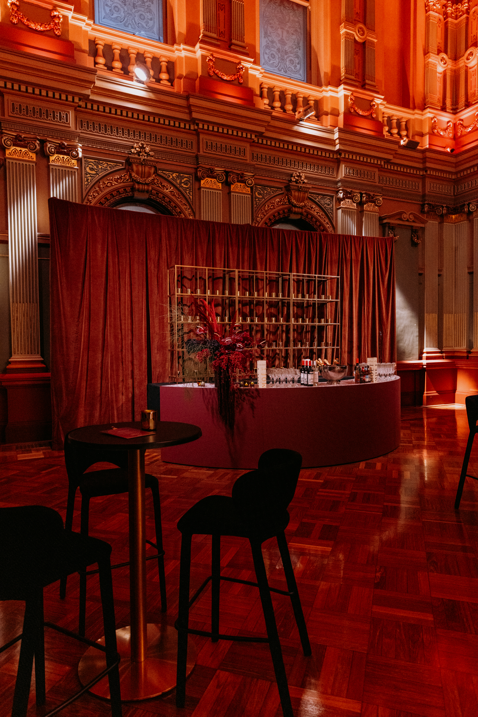 The Vestibule opened in 1880 as Sydney’s first town hall, prior to the completion of Centennial Hall. High above the elegant interior is a beautiful elliptical dome featuring some of the earliest examples of Australian stained glass and from which is suspended a spectacular crystal chandelier. Accommodating up to 200 people, the Vestibule is used primarily for registration or pre-dinner drinks for events being held in Centennial Hall.